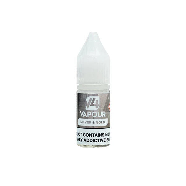 Embark on a vaping journey with V4 Vapour Freebase E-Liquid! UK crafted with 12mg nicotine strength and a 50VG/50PG ratio, this e-liquid packs a powerful punch with an authentic taste and cigarette-like throat hit. Conquer the deliciousness of Silver and Gold, Cool Mint, and Cherry flavours. Perfectly balancing flavour with vapour production, this e-liquid is an ideal choice for any vaper - beginner or seasoned!