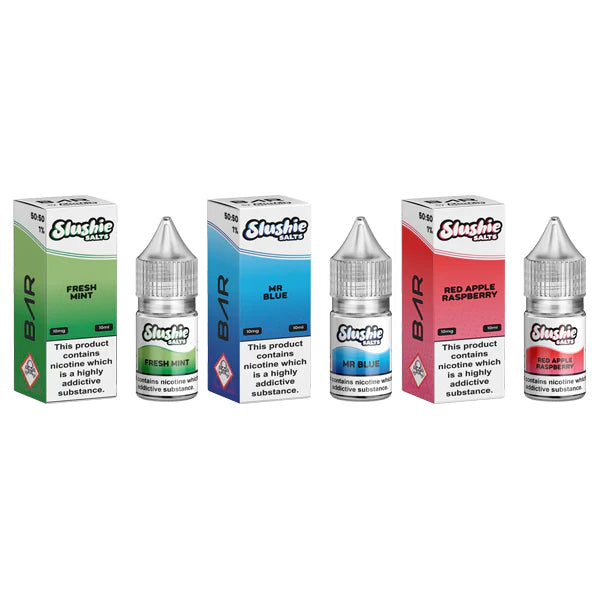 Mixed at a nicely balanced 50VG/50PG ratio, each Bar By Slushie flavour will be ideally suited for all pod devices or in a low wattage devices. With any of these, the 10mg of nicotine inside will be absorbed faster as it is vaped whilst not being too hard on the throat during vaping.