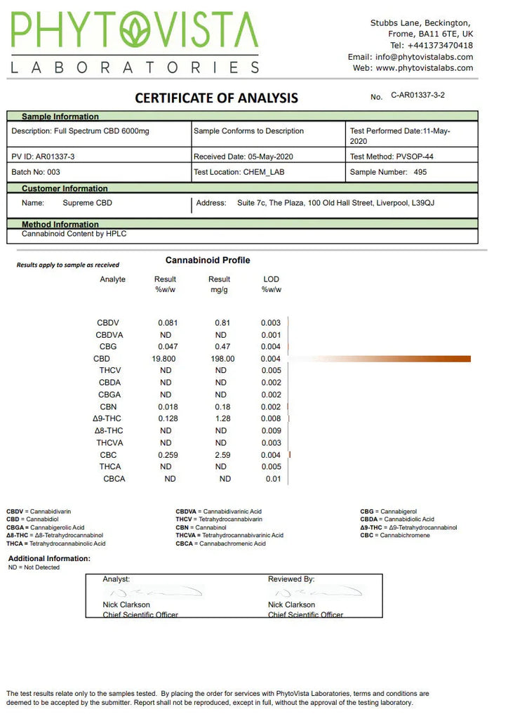 Suited for intermediate and advanced users of CBD, Supreme CBD's own full-spectrum CBD oils are extracted using a specialist CO2 process – the gold standard in extraction - that has been developed to isolate and remove any unwanted compounds, while creating the maximum potency level of phytocannabinoids. Cutting edge technology is employed to ensure a full-spectrum oil, that includes both high levels of CBD, cannabinoids and terpenes and preserves the highest levels of purity across the compounds. They include components including phytocannabinoids, flavonoids and terpenes.