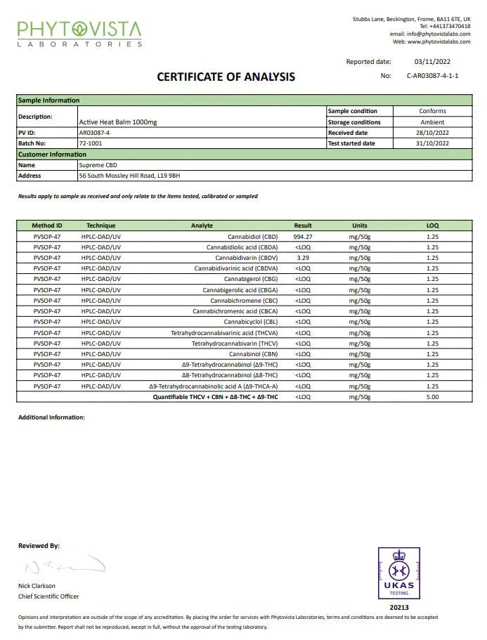 Supreme CBD 1000mg Broad Spectrum CBD Active Heat Balm - 50ml