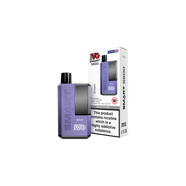 design incorporates a 2ml pod with an additional 10ml auto-refill tank, eliminating the need for messy refills while remaining fully UK legal and TPD-compliant. The device boasts a sleek, compact form factor that's perfect for on-the-go vaping, complete with a draw-activated mechanism for effortless use. With USB-C fast charging capability and a wide array of delicious flavours to choose from, the IVG Smart 5500 caters to both newcomers and experienced vapers alike, offering a hassle-free and enjoyable vaping experience in a stylish, portable package.