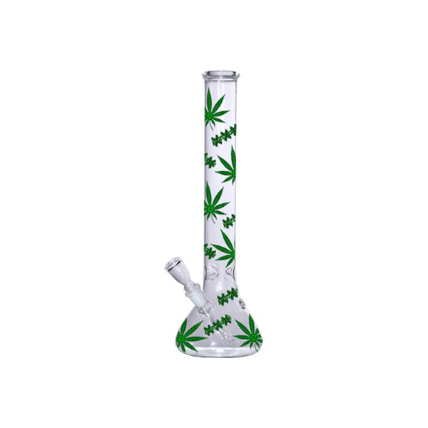 18" Amsterdam Green Leaves Designs Glass Bong - GB6