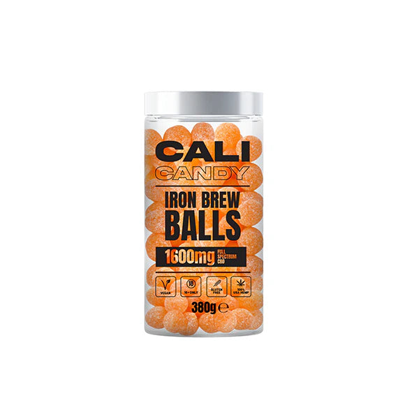 Iron Brew Balls: Sugar, Glucose Syrup, Citric Acid, Full Spectrum CBD Extract, Flavouring, Colour: E102, E110