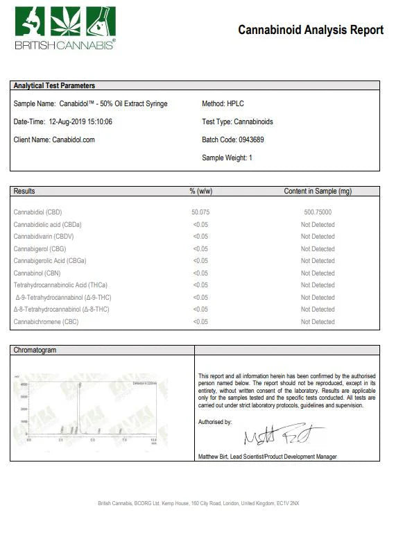 CBD by British Cannabis 500mg CBD Cannabis Extract Syringe 1ml