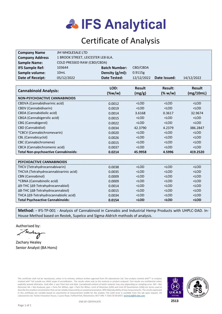 • Cold Pressed Full Spectrum CBD