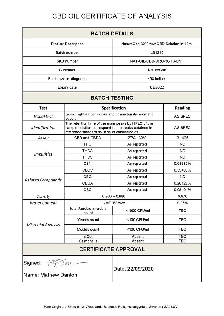 Naturecan's 30% CBD Oil is broad-spectrum cannabidiol (CBD) combined with pure organic MCT carrier oil – and absolutely zero THC content.