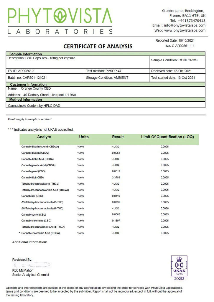 These Orange County soft-gel CBD oil capsules are bursting with full-spectrum CBD, giving you a carefully measured dose in every pod. Each capsule boasts a wide range their acclaimed, award winning carefully chosen cannabinoids which are subjected to stringent quality checks, your experience is sure to be a comprehensive one even in low doses. Available in 60 capsules, it's never been easier to ensure that you have the correct dose and guaranteed to never run unexpectedly low.