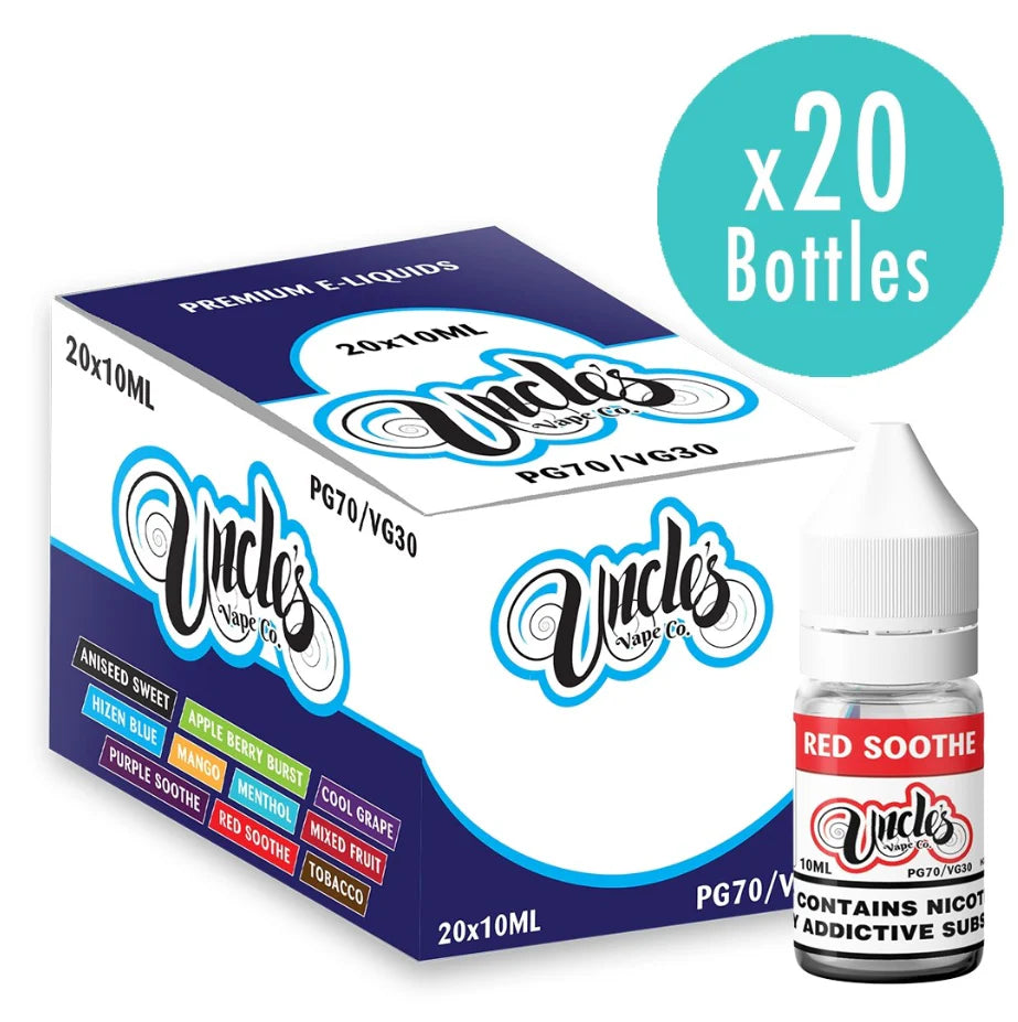 Red Soothe Brand: Uncles Vape Co Bottle Sizes: 10ml Primary Flavours: Red Soothe 30VG / 70PG 3 x £5 20 x £22