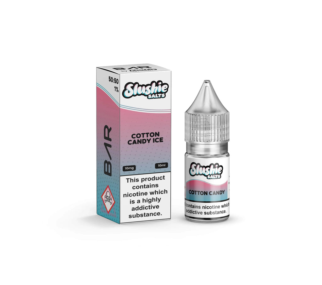 Slushie - Bar Salts - Cotton Candy Ice - A fluffy cotton candy taste with a frosty bite. Strength: 10mg...